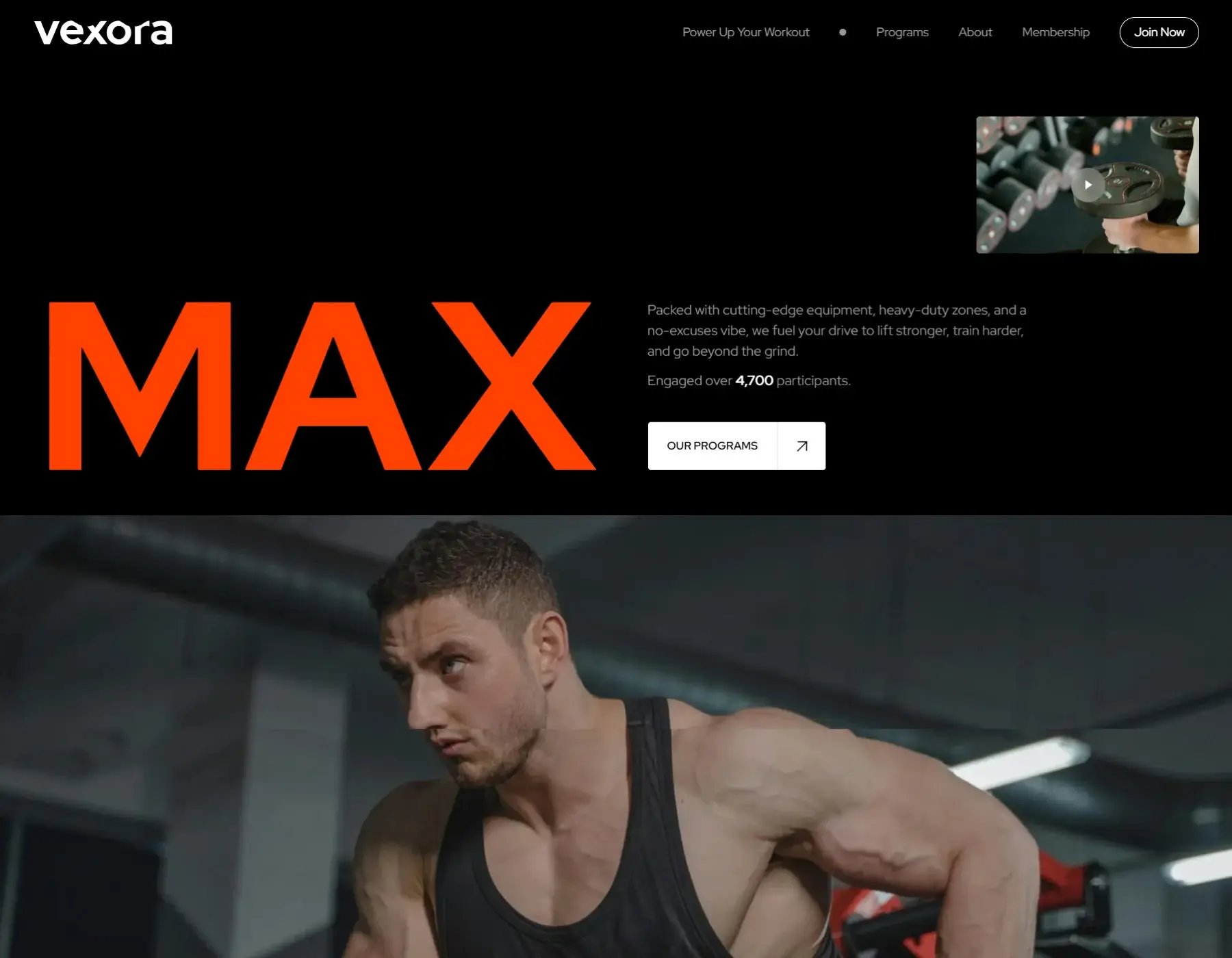 Vexora is a bold and energetic Webflow template built for gyms, fitness studios, and personal trainers. Highlight workouts, trainers 💪, schedules, and let members book sessions easily.