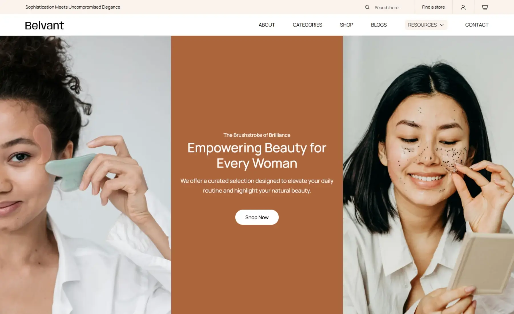 Belvant is an outstanding Webflow template designed for online stores specializing in a diverse range of beauty products, including makeup, cosmetics, fragrances, skincare essentials, and more.