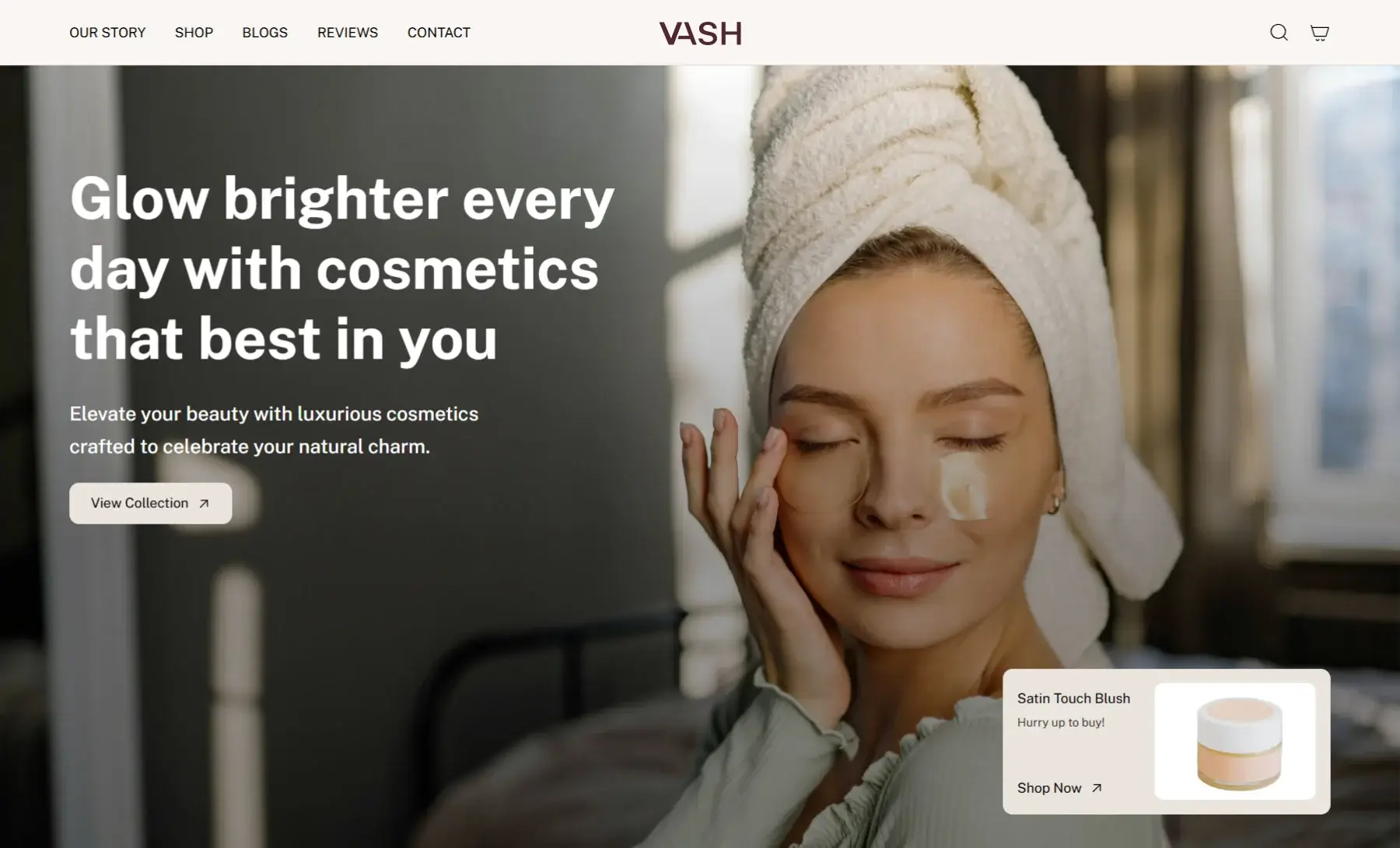 Vash – Beauty Cosmetics & Skincare Webflow Template. Boost your online beauty store with a clean design and seamless webflow integration. Vash features a responsive layout for an easy shopping experience on all devices.