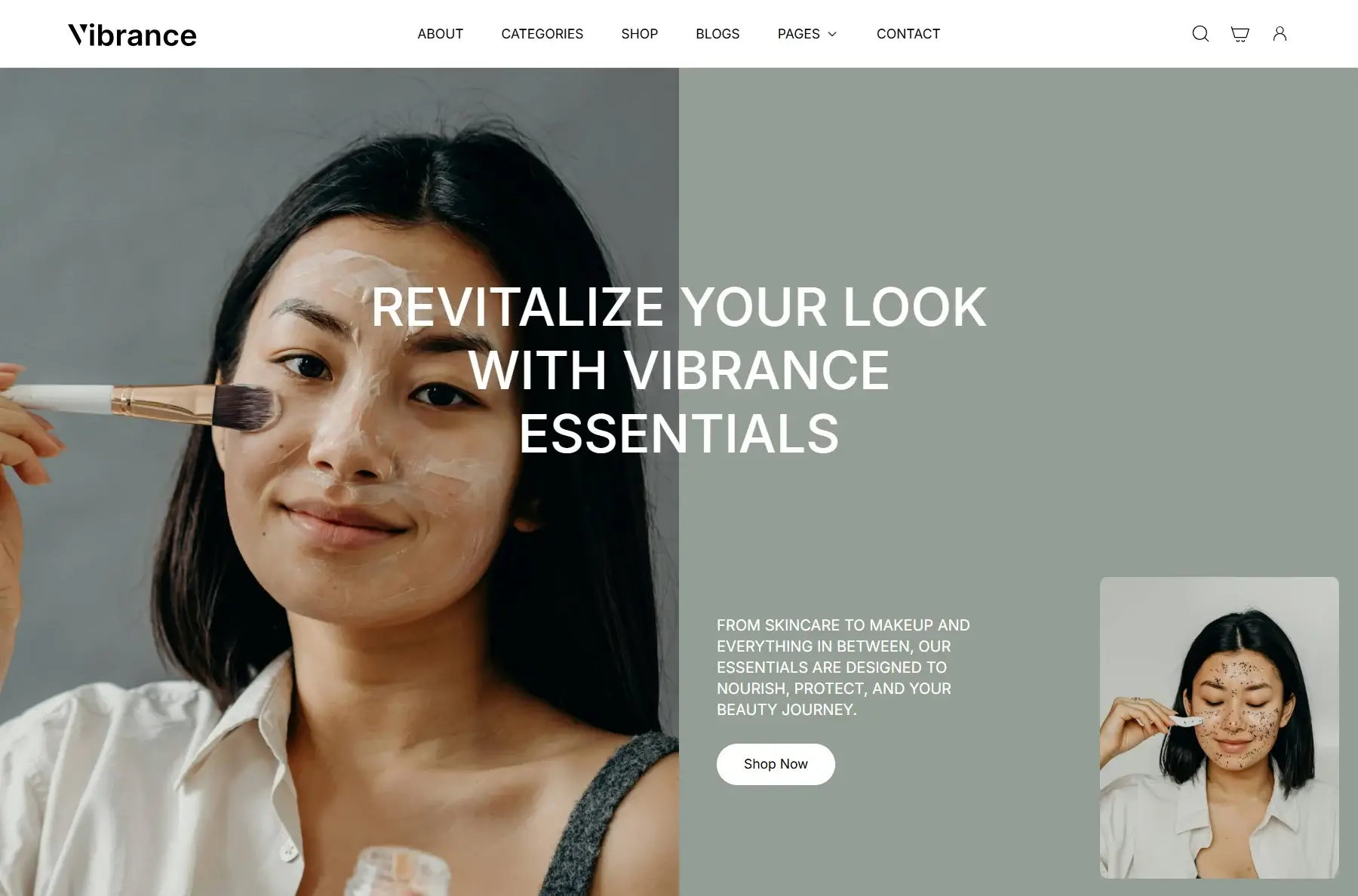 Vibrance - Beauty Cosmetics Webflow Template. Enhance your online beauty store with a sleek design and seamless Webflow integration. Vibrance features a responsive layout, ensuring a flawless shopping experience on all devices.