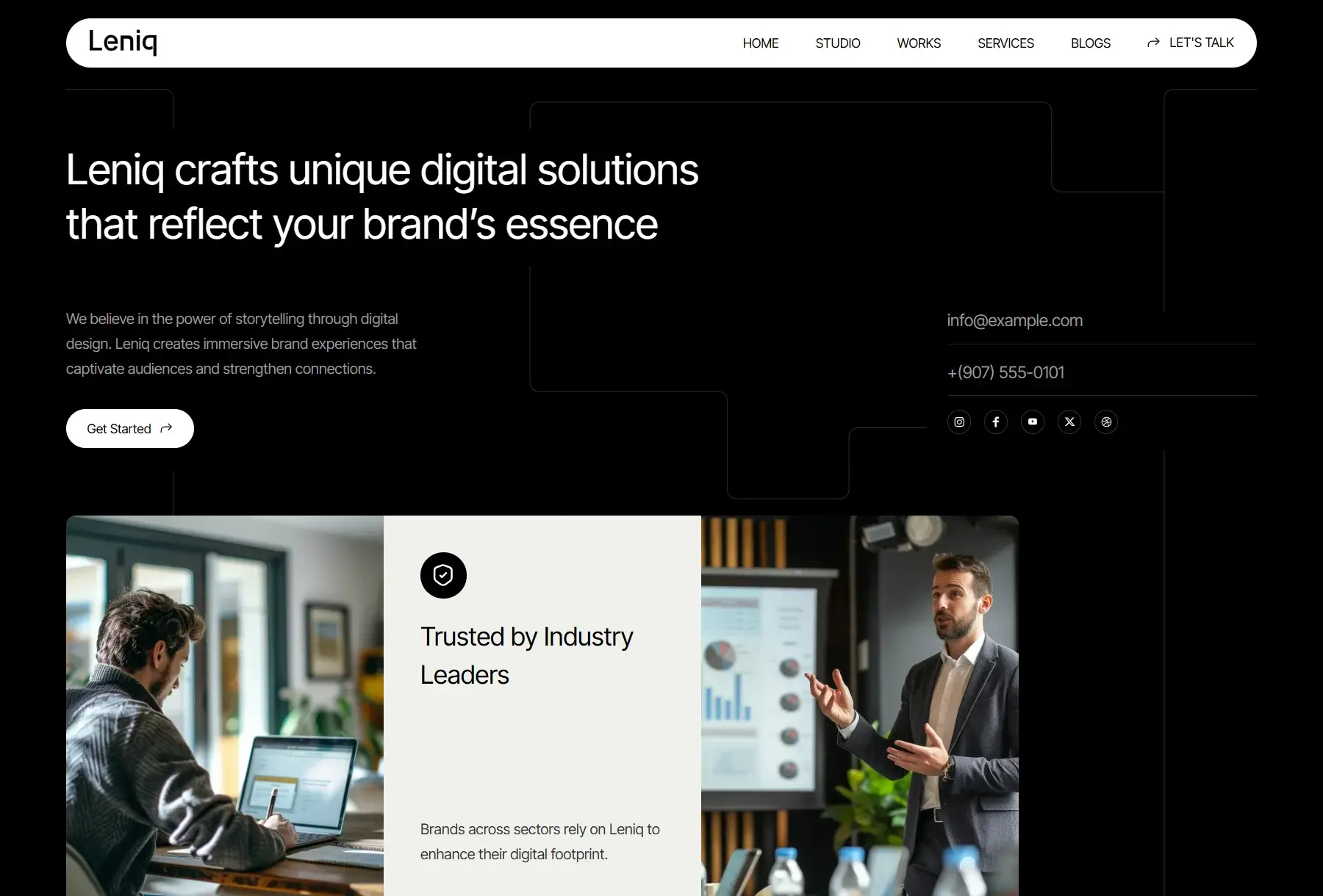 Leniq is a sophisticated, modern Webflow template crafted for agencies, studios, and creative professionals. With its clean design and polished layout, it’s the ideal space to present your services, projects, and artistic vision.