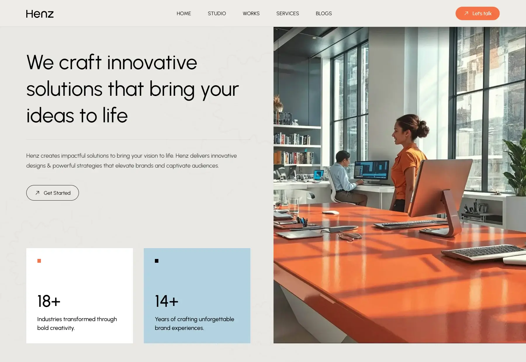 Henz is a dynamic and modern Webflow template crafted for agencies, studios, businesses, portfolios, and creative websites. Its sleek, professional design makes it ideal for showcasing your projects and services with style.