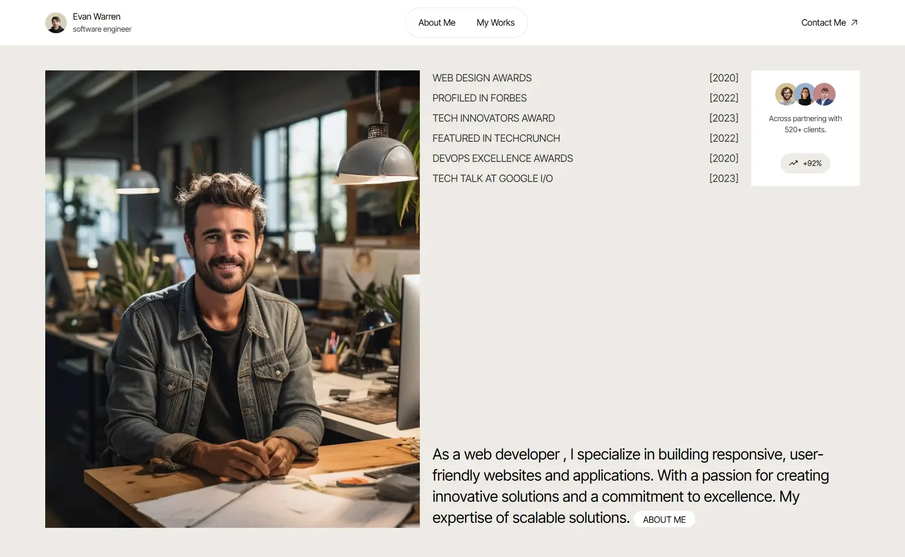 Evan is a portfolio Webflow template with a minimal, clean design and a fully responsive layout. It has all the components and features you need to launch your unique personal website.