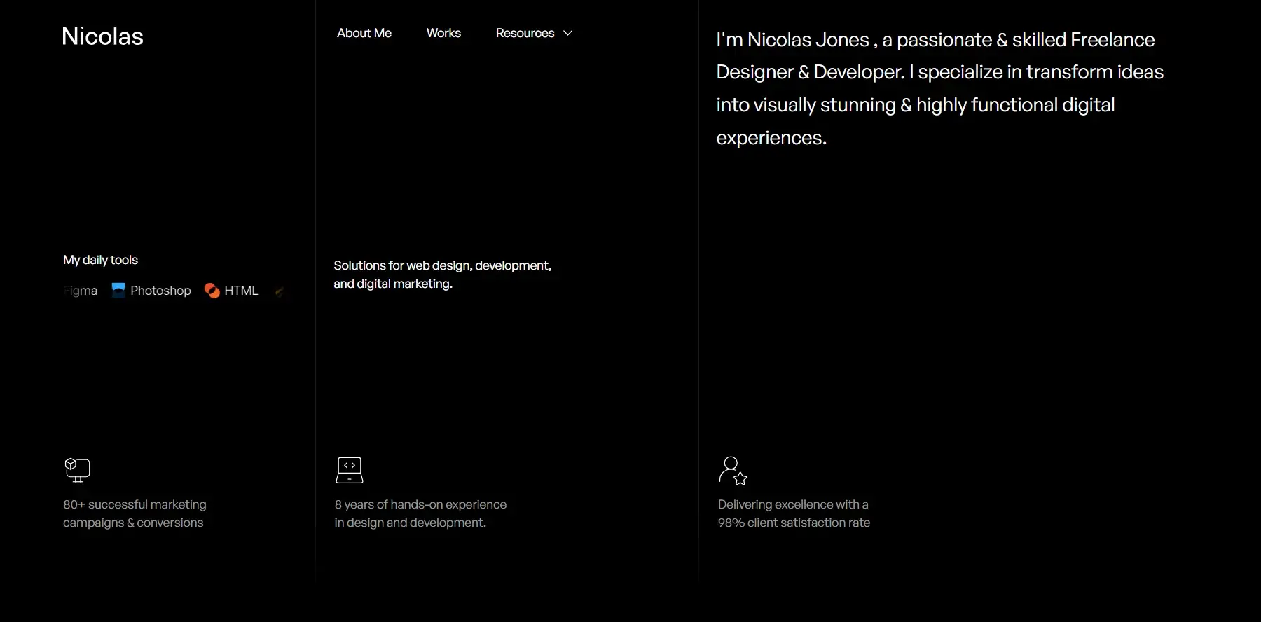 Nicolas Webflow template is specially designed for use by designers, artists, developers, freelancers, photographers, and all other creative types, anyone can use it to achieve the outstanding effects itβs capable of producing.