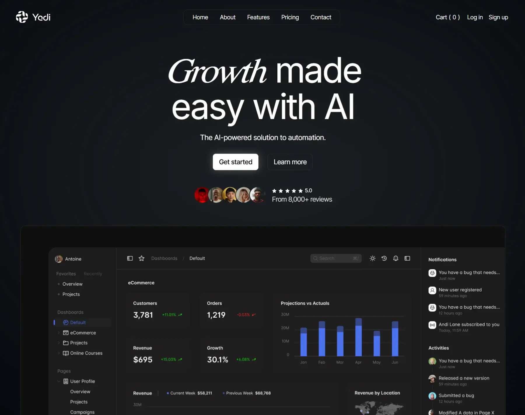 Introducing Yedi, a cutting-edge website template crafted specifically for AI startups. Yedi streamlines website creation and design, empowering AI ventures of all sizes to effortlessly establish their online presence. Revolutionize your website.