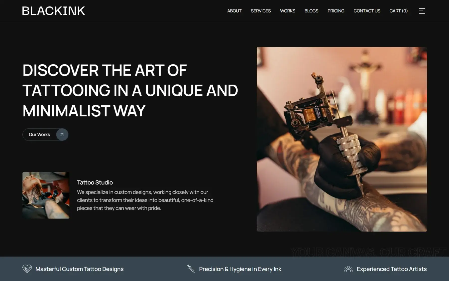 Tattoon, the dark themed template that is highly suitable for creating websites for tattoo studios, tattoo freelancers, tattoo shops,...Tattoon gives a modern & clean design that allows your work to stand out and be readily recognized by clients.