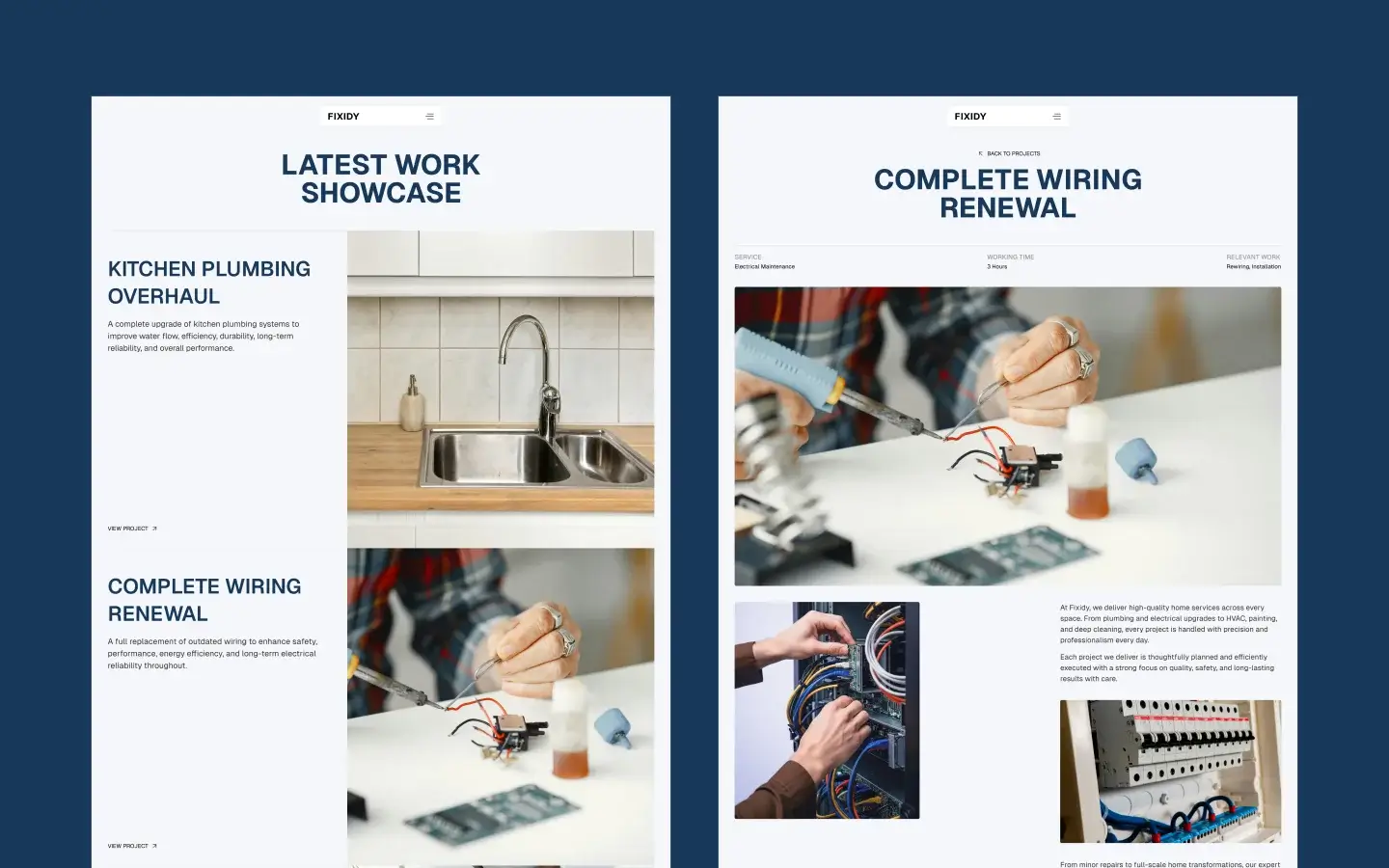 Fixidy is a practical and easy-to-use Webflow template designed for home improvement professionals and service providers. Whether you offer plumbing, electrical work, painting, or full home renovations, Fixidy helps you present your services clearly and professionally 🏠.
